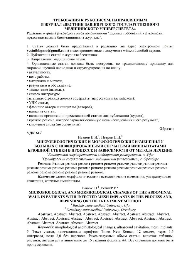 450077, Россия, Уфа, ул. Ленина, 3. Главный редактор: К.В. Храмова (д.фил.н., профессор ФГБОУ ВО БГМУ Минздрава России)
